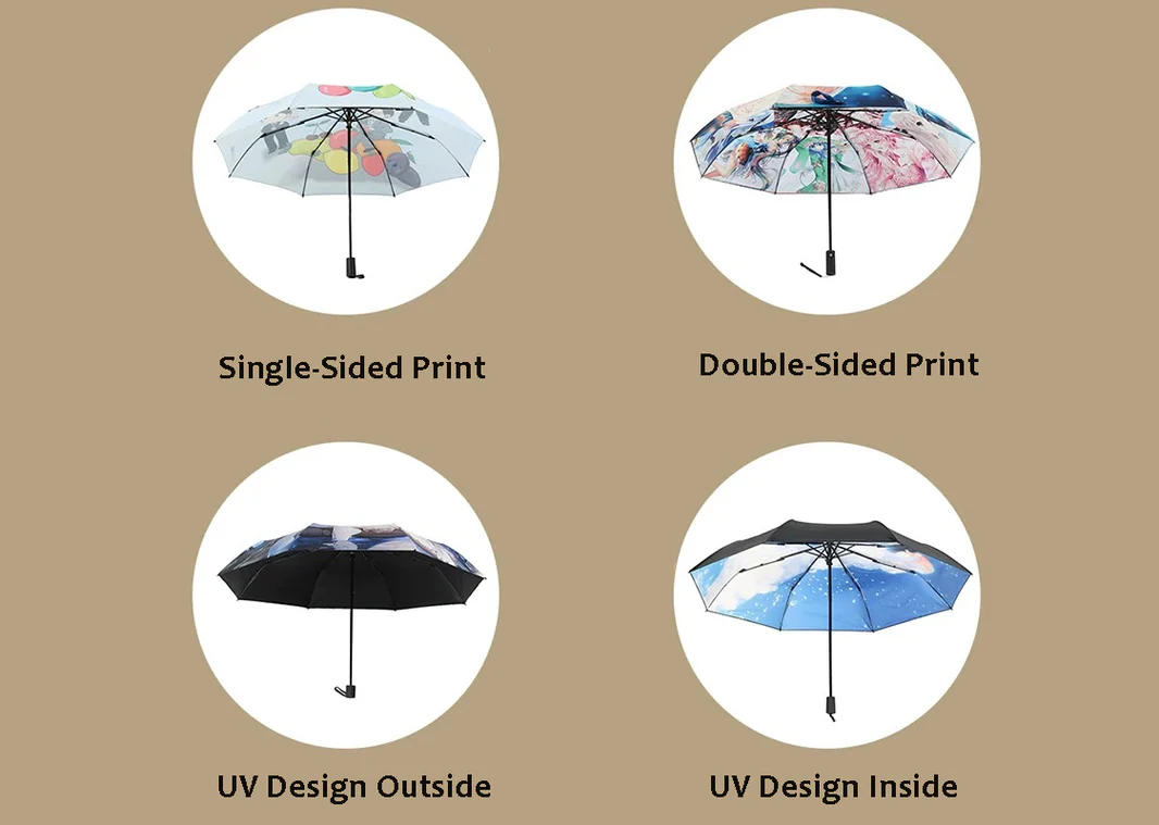 We love to hear from you how to custom your own umbrella. We can custom outer canopy printing, custom inner canopy design, custom ppening mechanism, custom umbrella bag style and custom gift box packaging.
