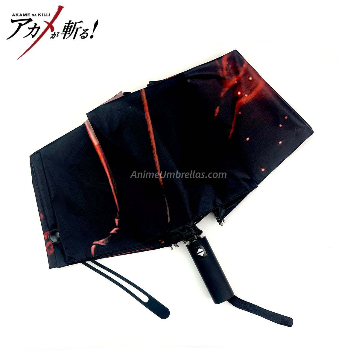 This Akame ga Kill! umbrella captures Akame in a classic battle scene. Her long black hair flows like silk, her black-and-red combat outfit sharp and striking. She wields the cursed blade Murasame, surrounded by crimson lightning effects, as if fresh from a fierce fight, the scars on her body only heighten her resolve. Open the umbrella and feel Akame's unshakable will to fight for her beliefs. For fans, it's more than rain protection, it's a reminder of the spirit to cut down all evil.