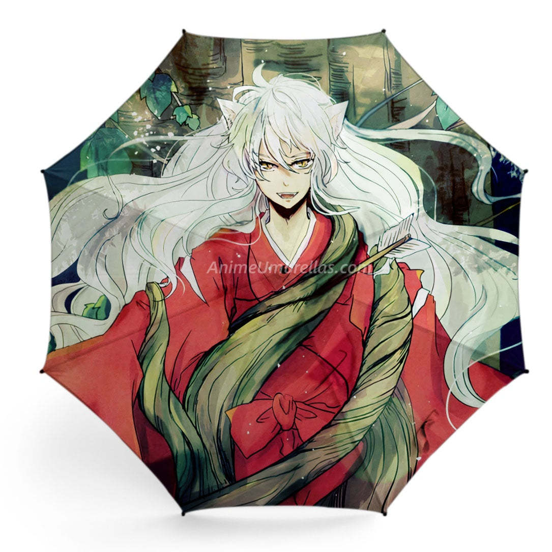 This Inuyasha umbrella showcases the half-demon's iconic look. His silver hair flows like a waterfall, ears sharp and alert, dressed in his fiery red robe with a mystical forest aura surrounding him, just as if he's about to leap into the supernatural wilds of the Sengoku era. Open it, and you can almost feel his untamed spirit mixed with unshakable resolve.