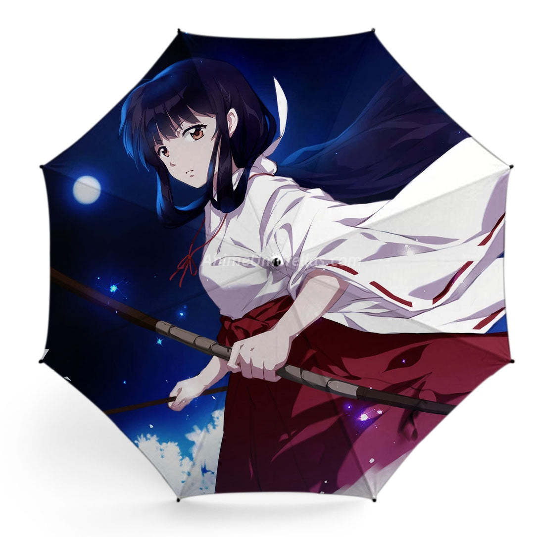 This Inuyasha umbrella presents Kikyo gently lifting her red hat, dressed in miko robes with long flowing hair. Graceful and refined, it captures her classical beauty with precision. Functional yet collectible, it feels like stepping into her timeless story whenever you open it, bringing a touch of anime romance into daily life.
