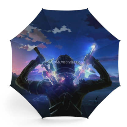 This umbrella shows Kirito's classic back view with dual swords glowing in his hands. The dramatic mix of sunset and night sky highlights his determination and strength, letting fans feel the battle energy and adventure of Sword Art Online even on rainy days.