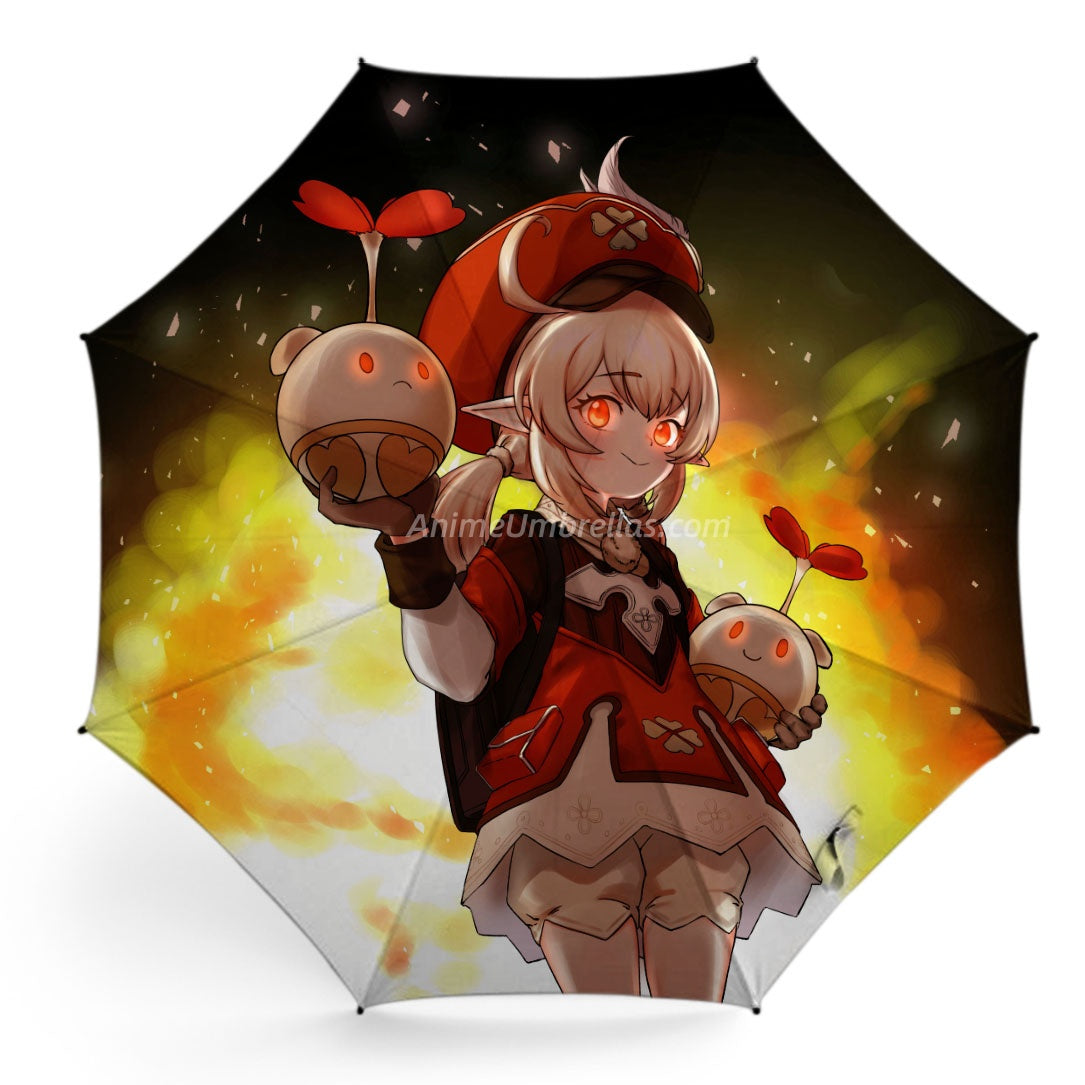 This Genshin Impact umbrella shows Klee holding her Jumpy Dumpty with fiery effects blazing behind her. Cute with a hint of danger, the design captures her mischievous spirit perfectly. More than just rain and sun protection, it lets players relive her spark-filled adventures. Open it, and you’ll feel like hearing Kaboom! while carrying her energy into every rainy day.