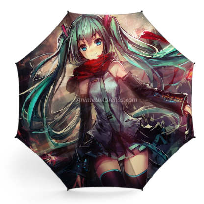 This Hatsune Miku umbrella features her classic twin tails and outfit with a red scarf, set against a dreamy and powerful backdrop. It’s practical yet full of fan spirit, letting you carry Miku’s futuristic charm and music energy with you. Open it, and it’s like adding a touch of anime romance to your daily routine.